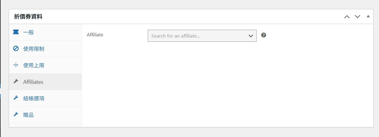 - 在 Affiliate 欄位選擇對應的推廣者